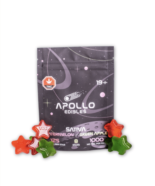 $48.99Our strongest gummies yet. Blast off to a new galaxy with a high dosage of Apollo Shooting Stars Gummies made locally in British Columbia. Crafted with premium quality ingredients and top of the line THC oil, these SATIVA Green Apple gummies are the boost of flavour you’re looking for in outer space. We recommend dividing up these highly potent stars even for experienced users. Get ready to take off!